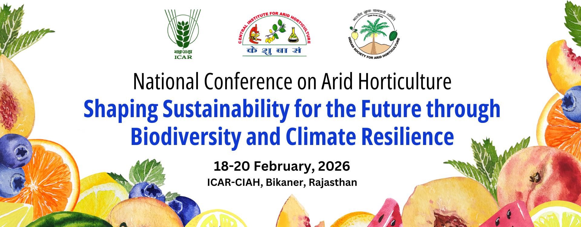 The ICAR–Central Institute for Arid Horticulture (CIAH), Bikaner, Rajasthan has been at the forefront of research, development, and dissemination of technologies for harnessing the potential of arid horticultural crops. Through scientific innovation, conservation of indigenous germplasm, and promotion of climate-resilient production systems, the institute continues to play a pivotal role in transforming the arid landscapes of India into hubs of sustainable horticultural growth. In this context, the National Conference on Arid Horticulture “Shaping Sustainability for the Future through Biodiversity and Climate Resilience” serves as a platform to bring together researchers, policymakers, entrepreneurs, and farmers to deliberate on current challenges, emerging opportunities, and innovative strategies for the holistic development of arid horticulture. The conference aims to foster collaborative efforts toward ensuring food and nutritional security, livelihood enhancement, and environmental sustainability in the arid zones of the country.