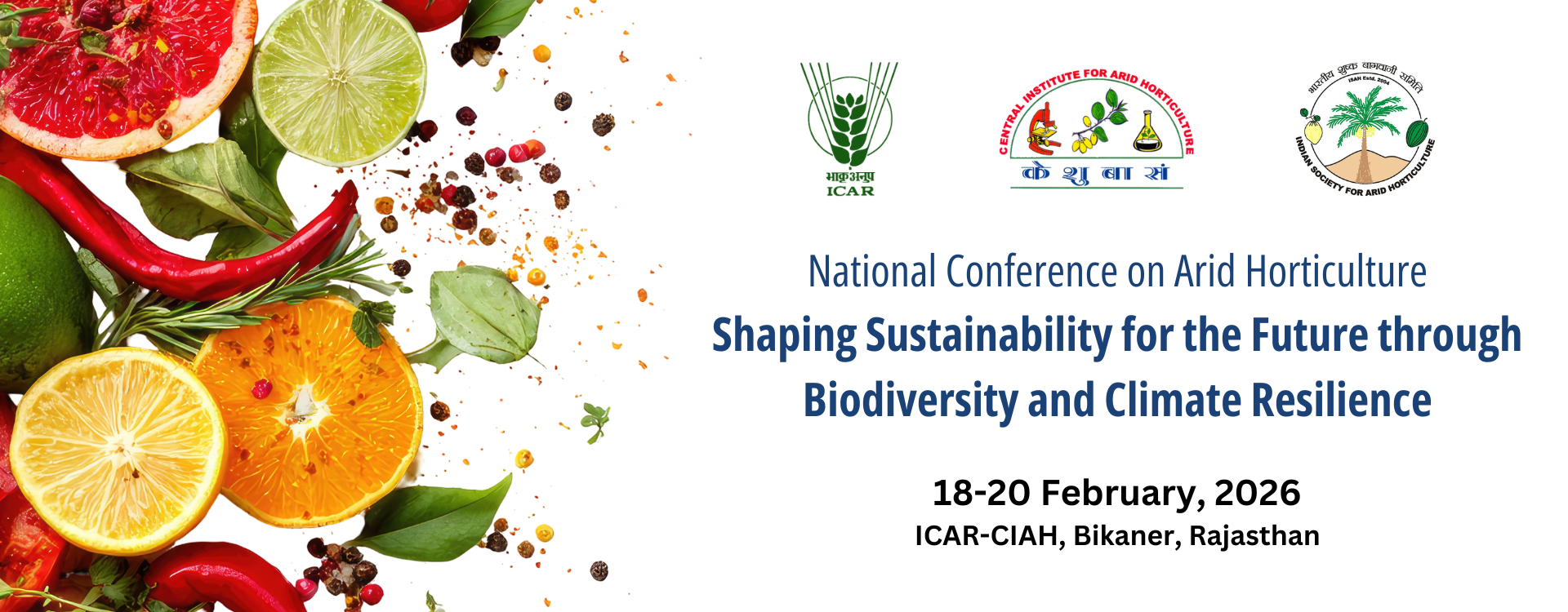 The ICAR–Central Institute for Arid Horticulture (CIAH), Bikaner, Rajasthan has been at the forefront of research, development, and dissemination of technologies for harnessing the potential of arid horticultural crops. Through scientific innovation, conservation of indigenous germplasm, and promotion of climate-resilient production systems, the institute continues to play a pivotal role in transforming the arid landscapes of India into hubs of sustainable horticultural growth. In this context, the National Conference on Arid Horticulture “Shaping Sustainability for the Future through Biodiversity and Climate Resilience” serves as a platform to bring together researchers, policymakers, entrepreneurs, and farmers to deliberate on current challenges, emerging opportunities, and innovative strategies for the holistic development of arid horticulture. The conference aims to foster collaborative efforts toward ensuring food and nutritional security, livelihood enhancement, and environmental sustainability in the arid zones of the country.